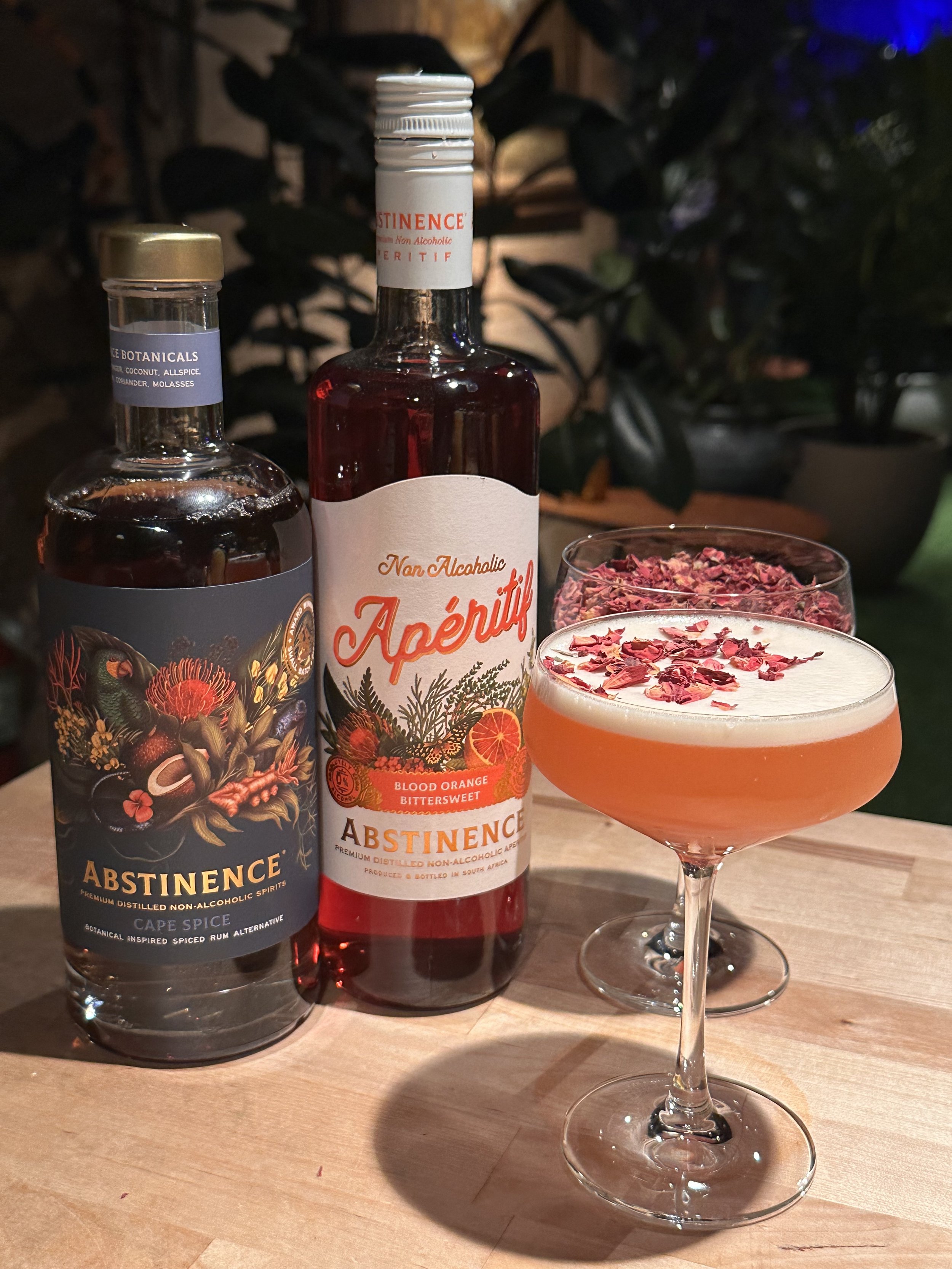 Abstinence Blood Orange Bitter Sweet Aperitif, Abstinence Cape Spice, palm sugar, pineapple juice, aquafaba