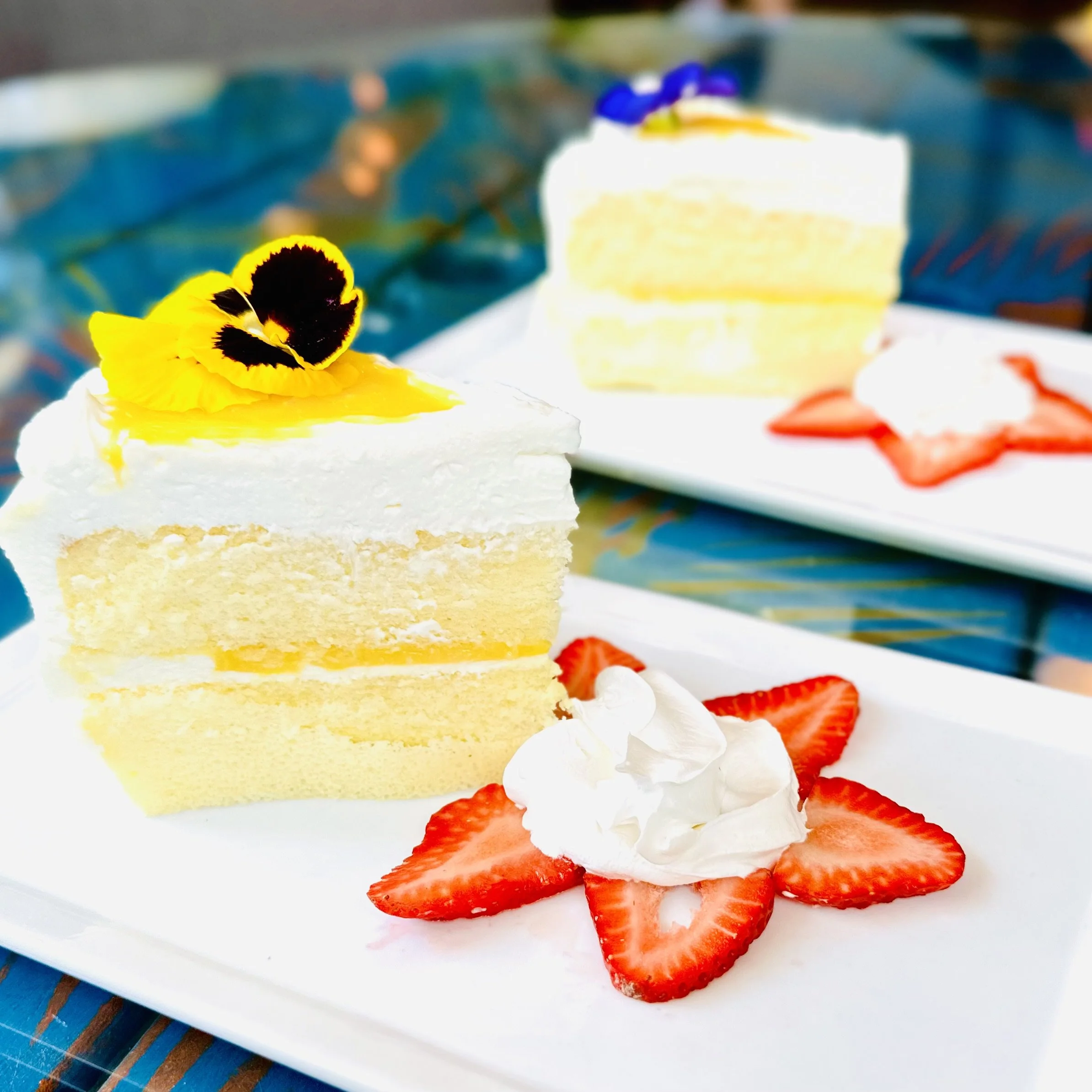 Airy coconut frosting with layers of passionate fruit and coconut cream