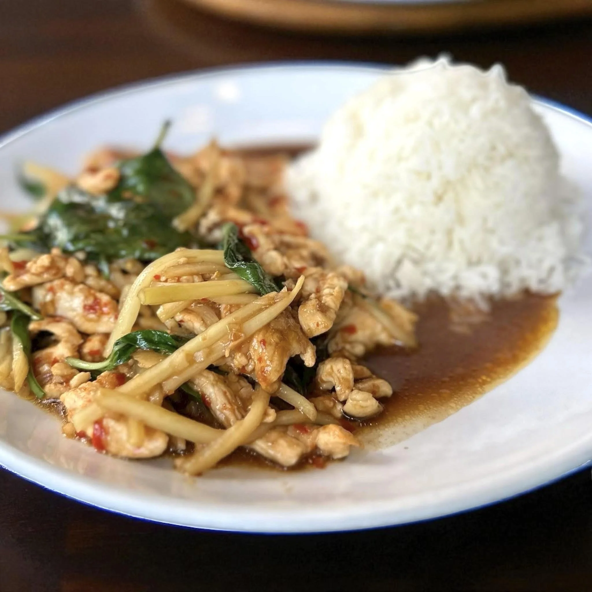 chicken, bamboo, ThaiPop stir fry sauce, Thai pepper, jasmine rice