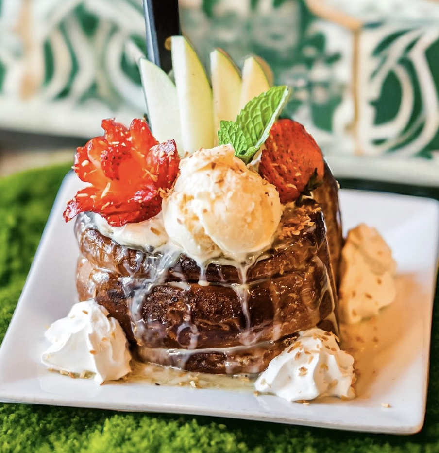 thick-cut buttery pan toasted bread, sweetened condensed milk, honey, strawberry, Granny Smith apples, vanilla ice cream, whipped cream